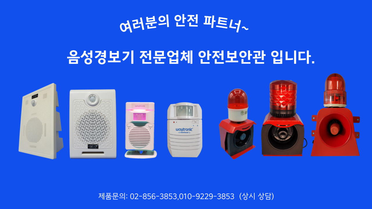 음성경보기는 여러분의 사업장이 더욱 안전해질 수 있도록 돕는 든든한 파트너가 될 것입니다."
